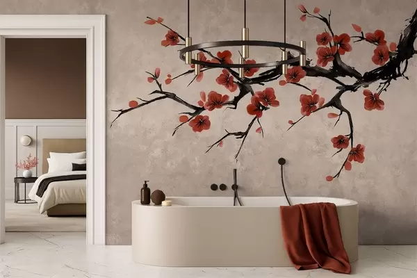 Fototapety Kvetoucí větev ve východním stylu na béžovém pozadí Č. w05425v4