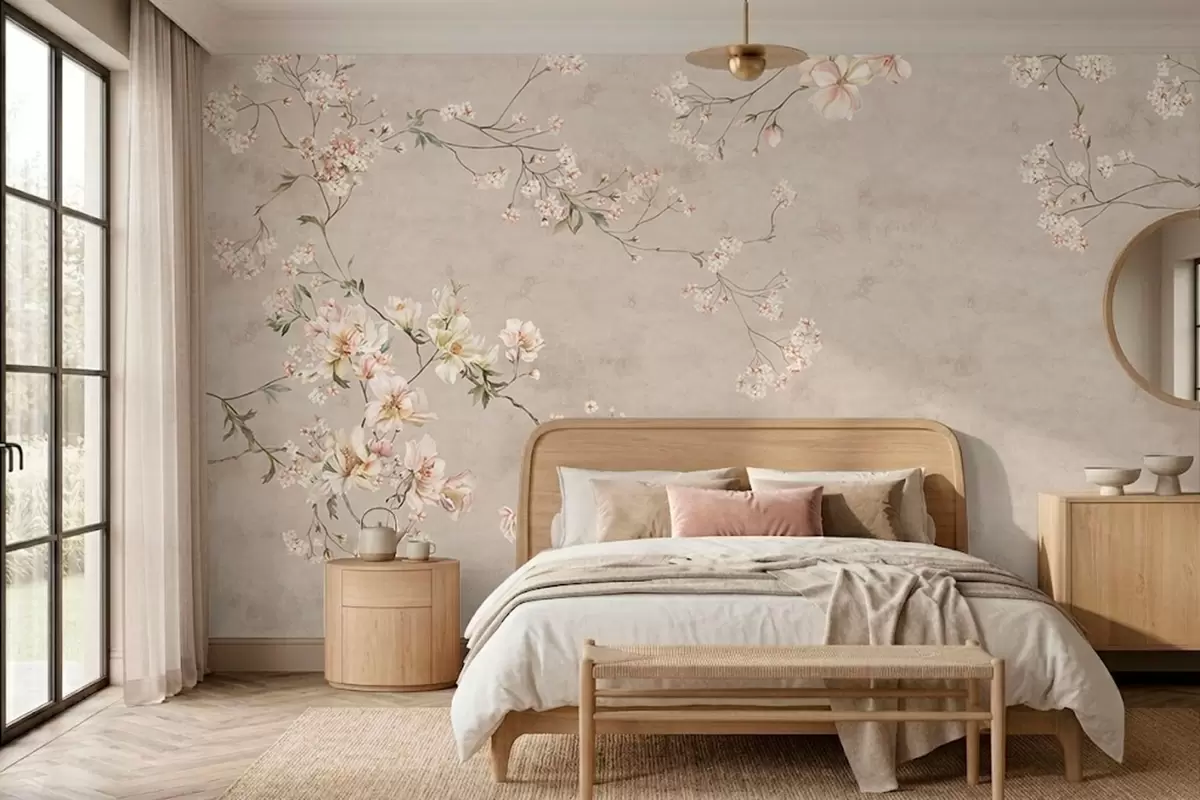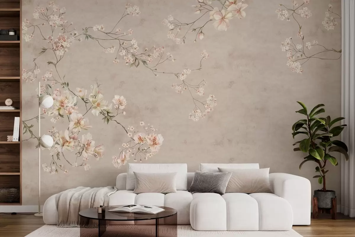 Fototapety Jemné květinové větvičky ve stylu chinoiserie na světlém pozadí Č. w05427