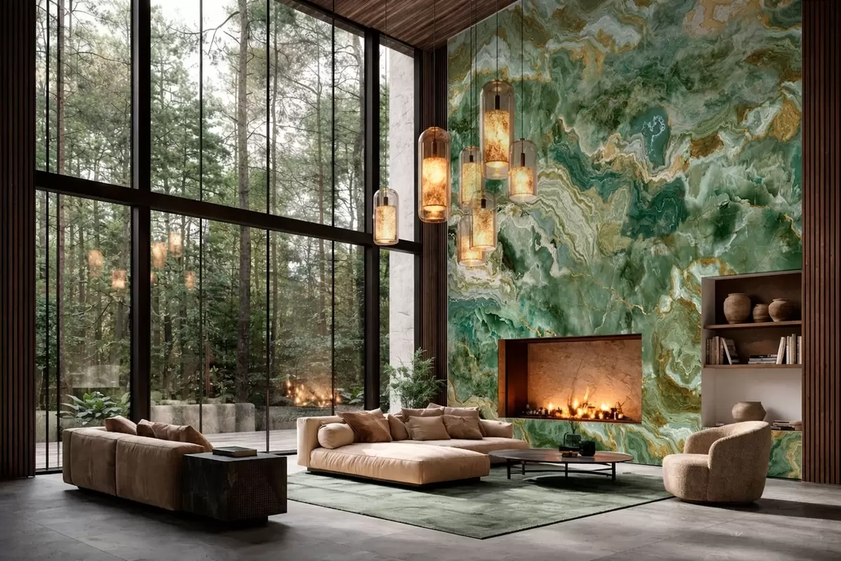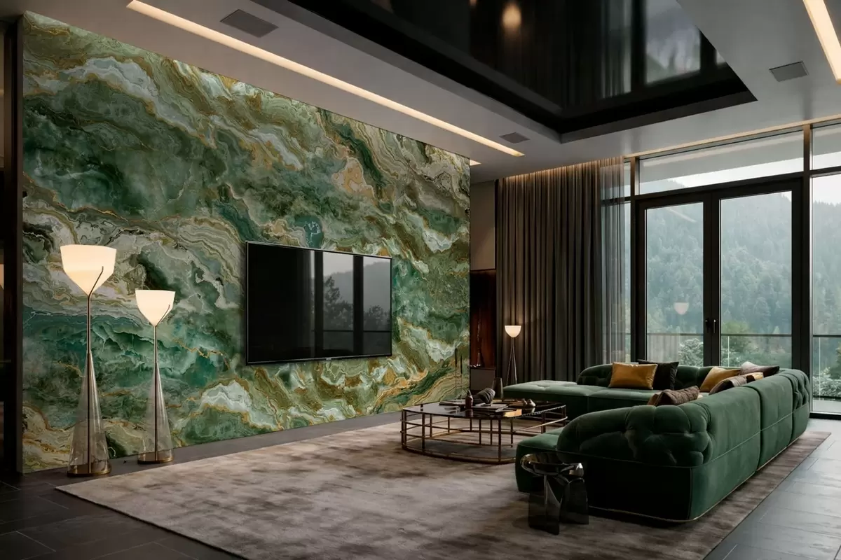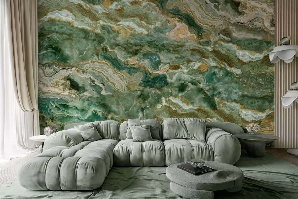 Fototapety Textura zeleného onyxu s plynulými vrstvenými žilkami Č. w05429
