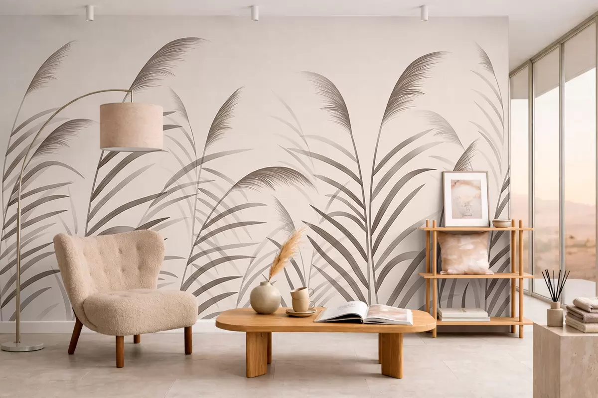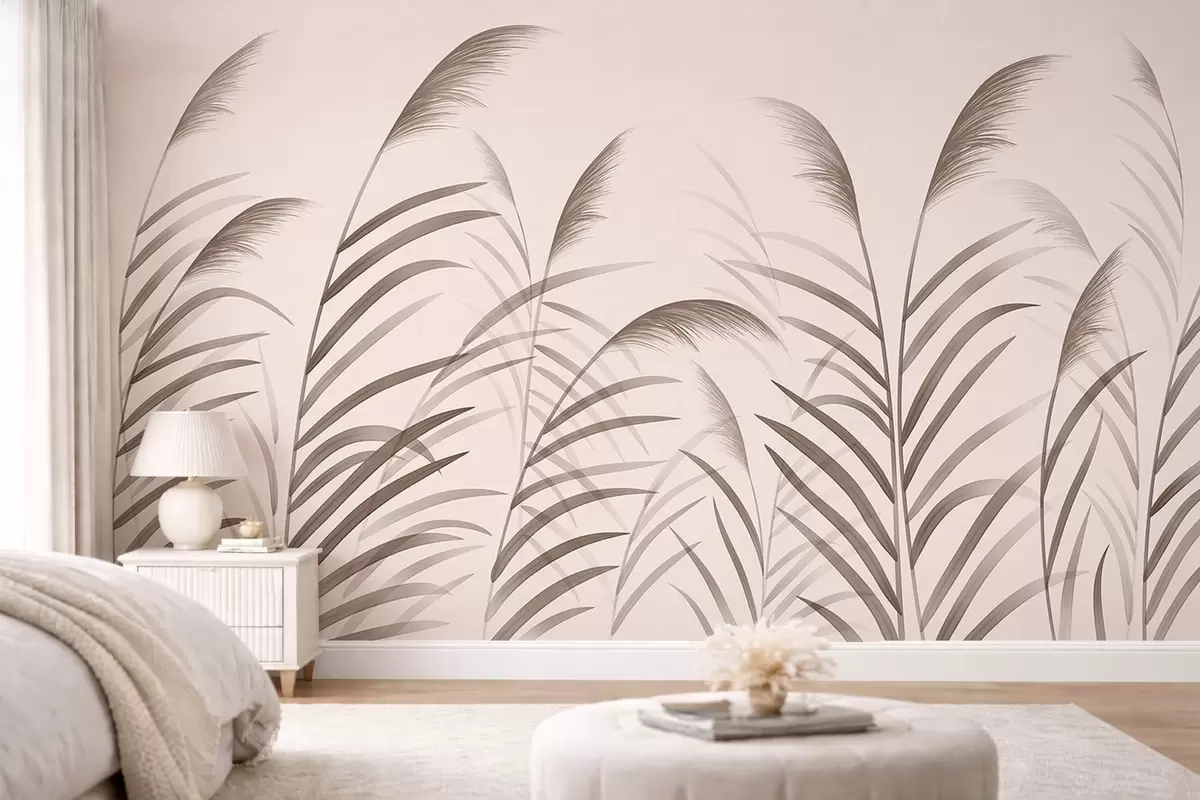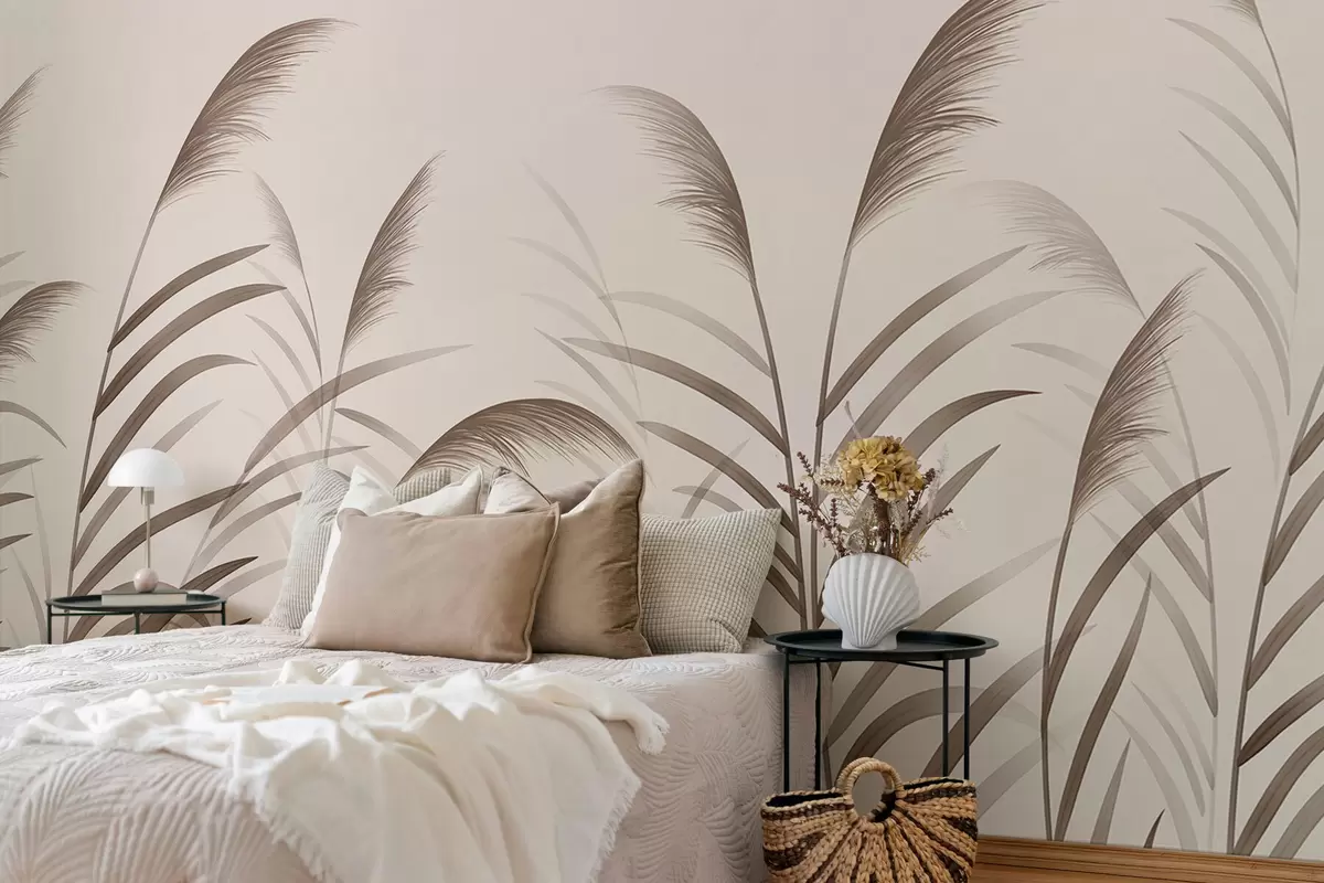 Fototapety Minimalistické siluety z rákosu v béžových odstínech Č. w05432