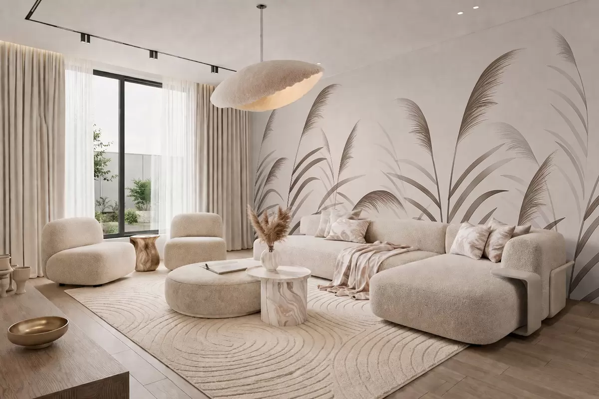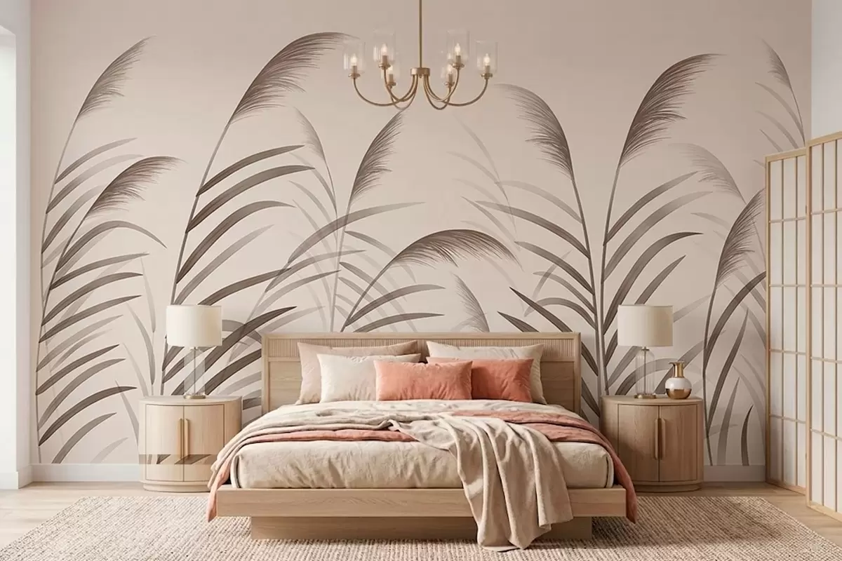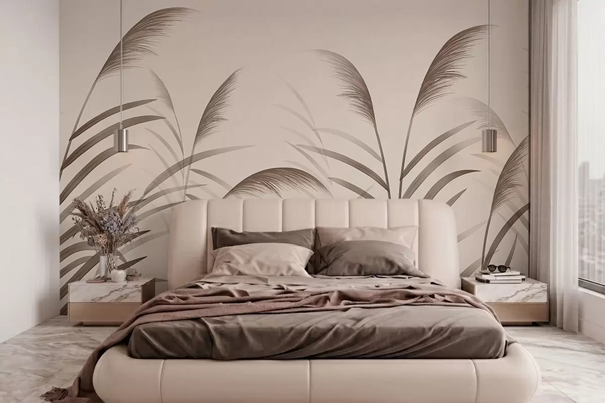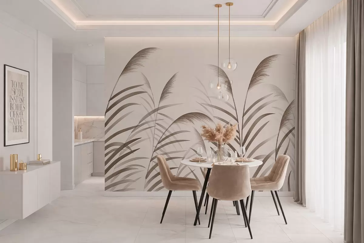 Fototapety Minimalistické siluety z rákosu v béžových odstínech Č. w05432