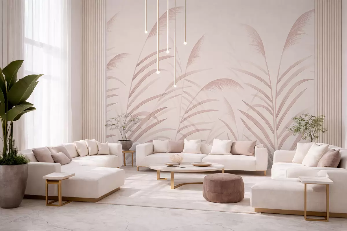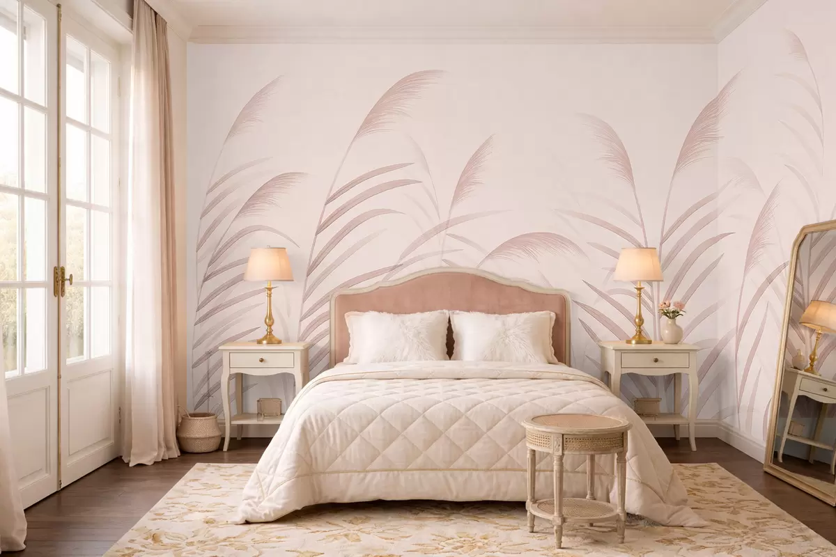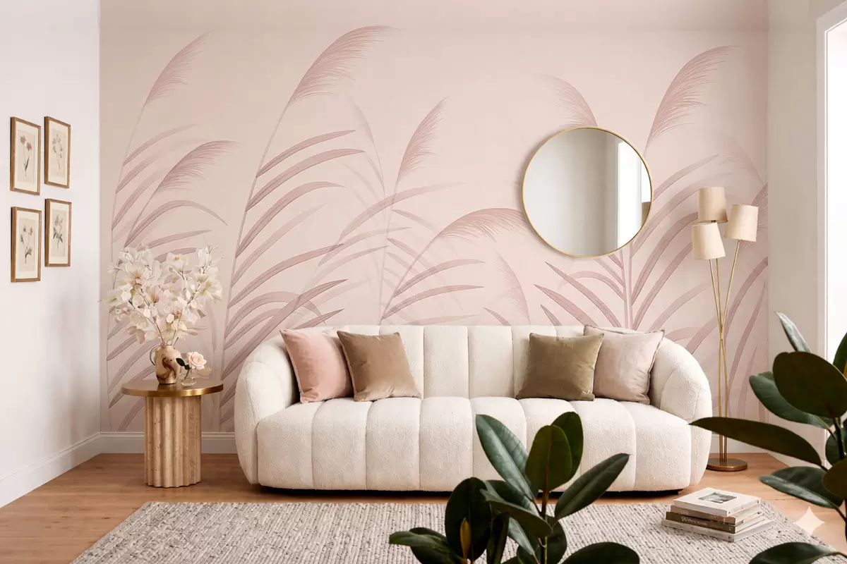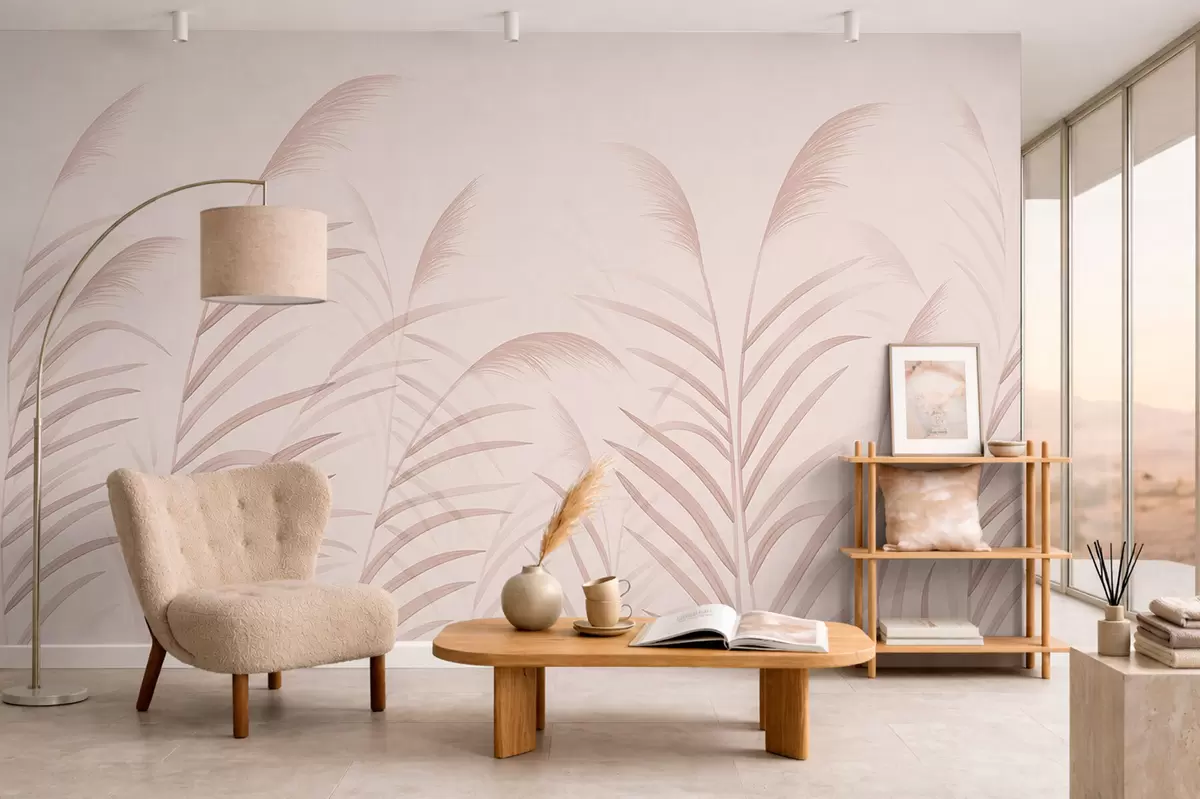 Fototapety Minimalistické trávy v jemných růžových odstínech Č. w05432v2