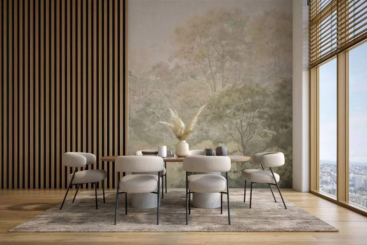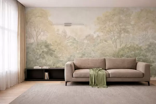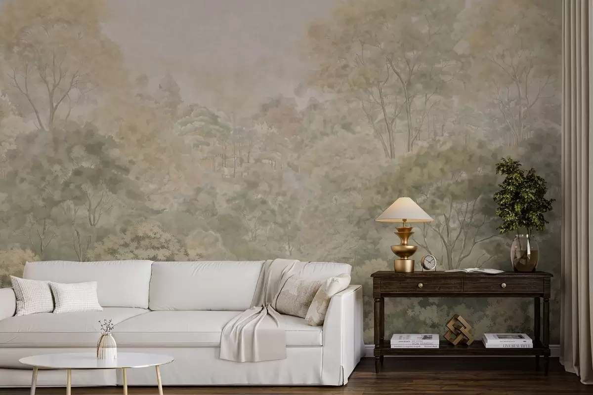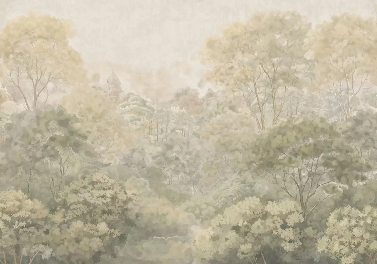 Fototapety Retro lesní krajina v tlumených zelených tónech Č. w05433