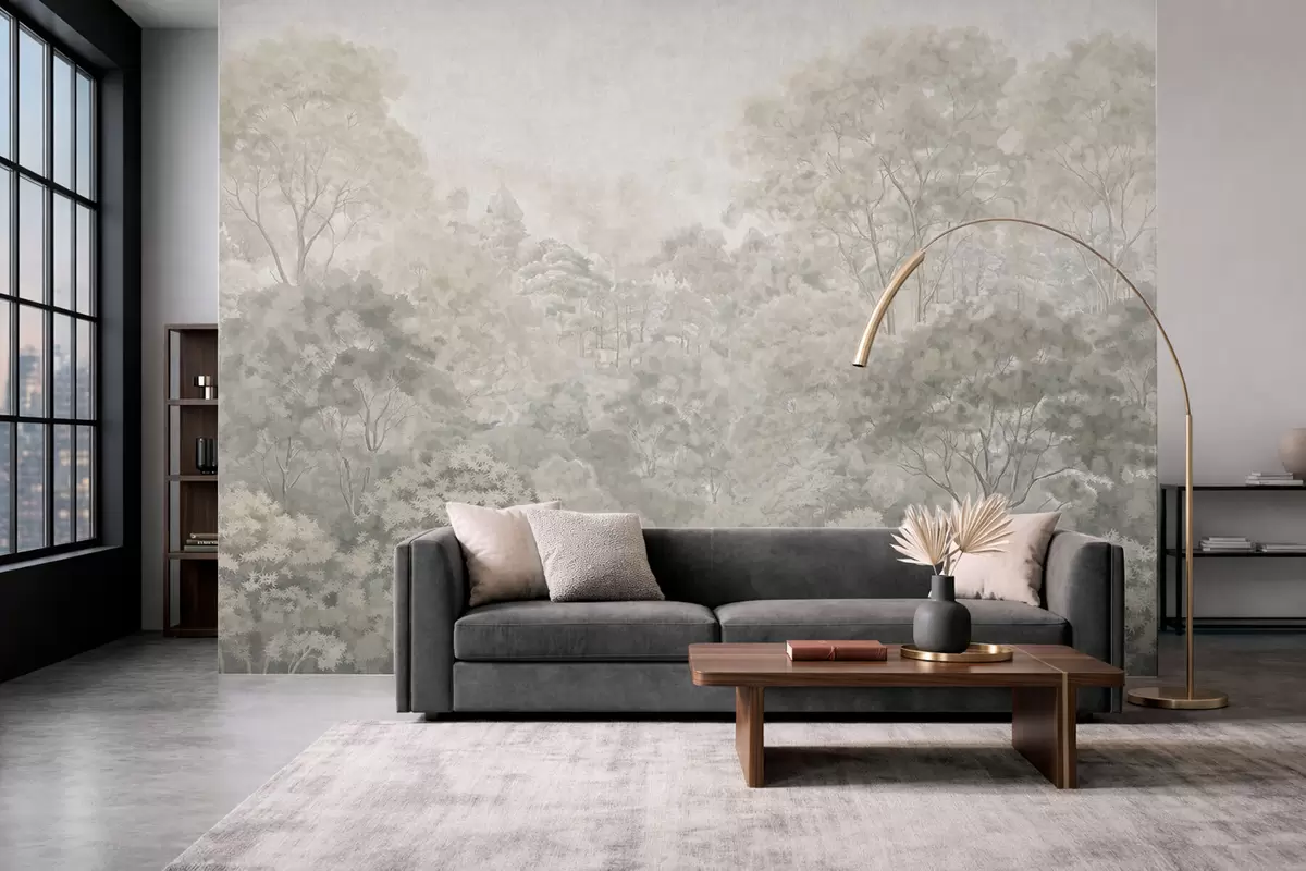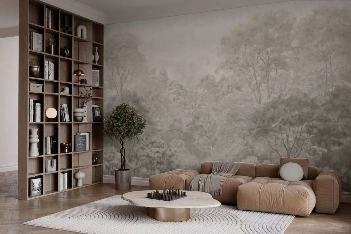 Fototapety Retro krajina s řídkým lesem v pastelových tónech Č. w05433v2