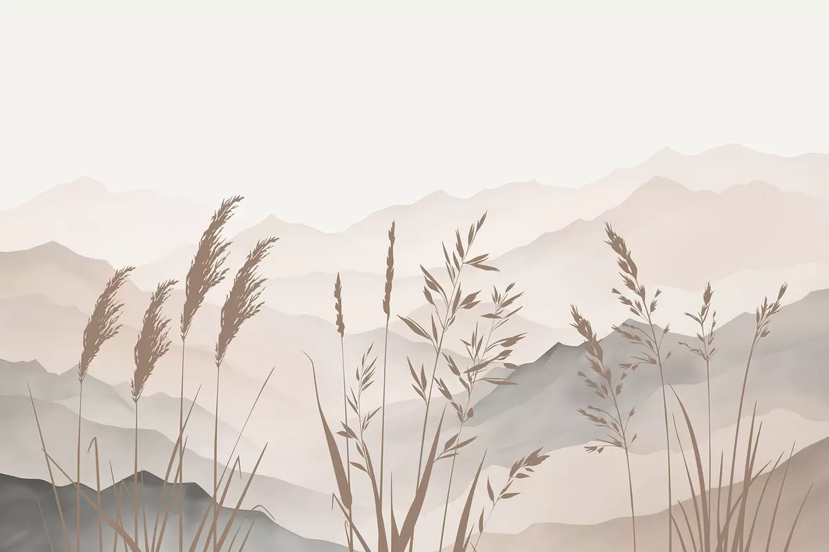 Fototapety Siluety trávy na pozadí hor Č. w05501v1