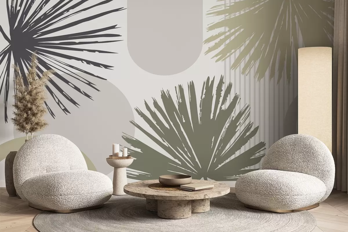 Fototapety Abstrakce s rostlinnými a geometrickými siluetami Č. w05505v2