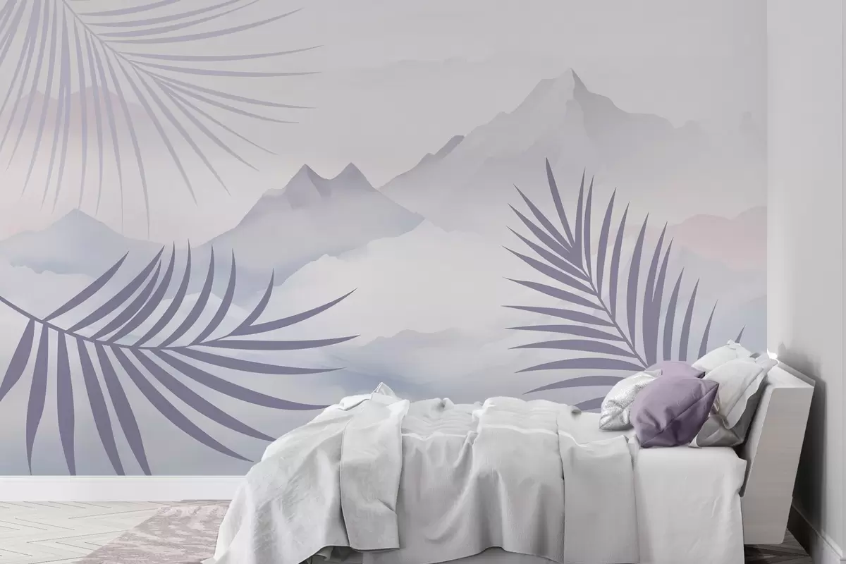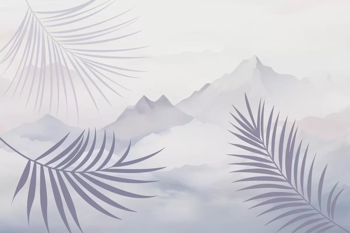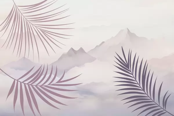 Fototapety Palmové listy na pozadí hor Č. w05548