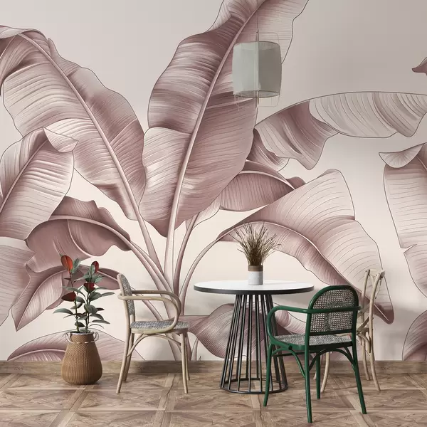 Fototapety nakreslené velké banánové listy v pastelově růžové Č. w07877v1