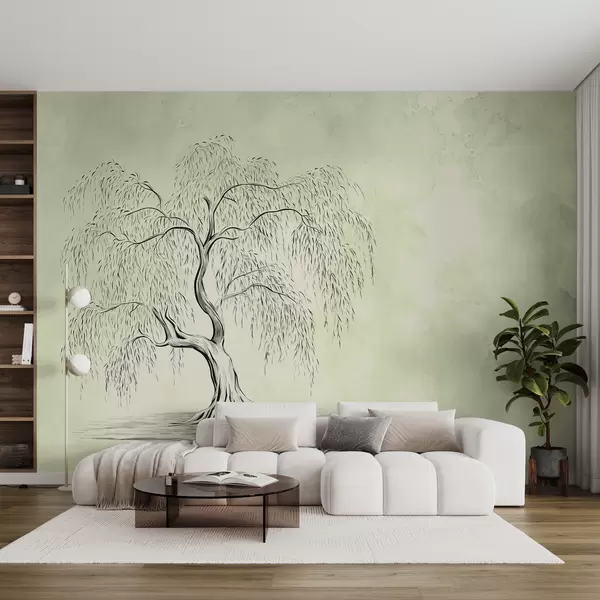 Fototapety Vrba na zeleném šedém akvarelu pozadí Č. w07969v1