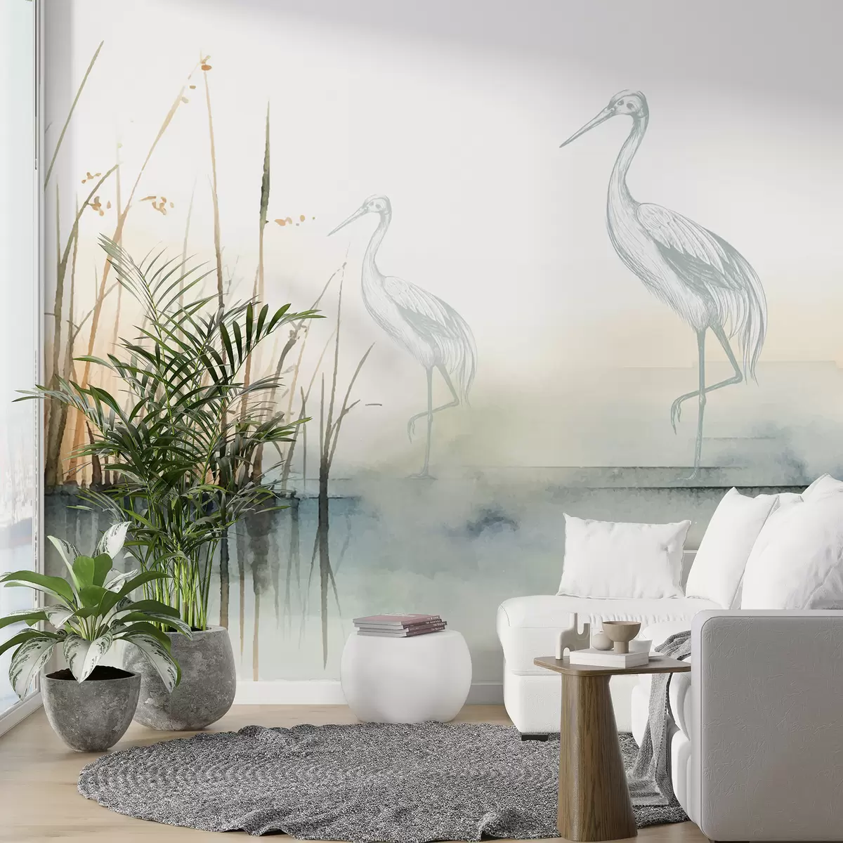 Fototapety Akvarel rákosí a volavky Č. w08078