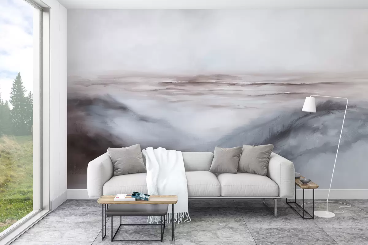 Fototapet Abstraktní krajina v pastelových barvách, tahy štětcem, pláž, moře, paleta šedých barev w08141