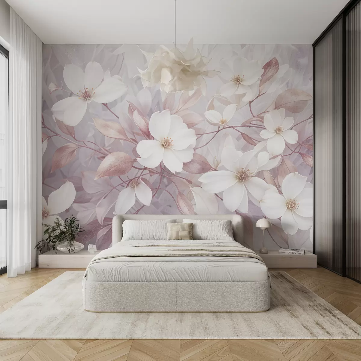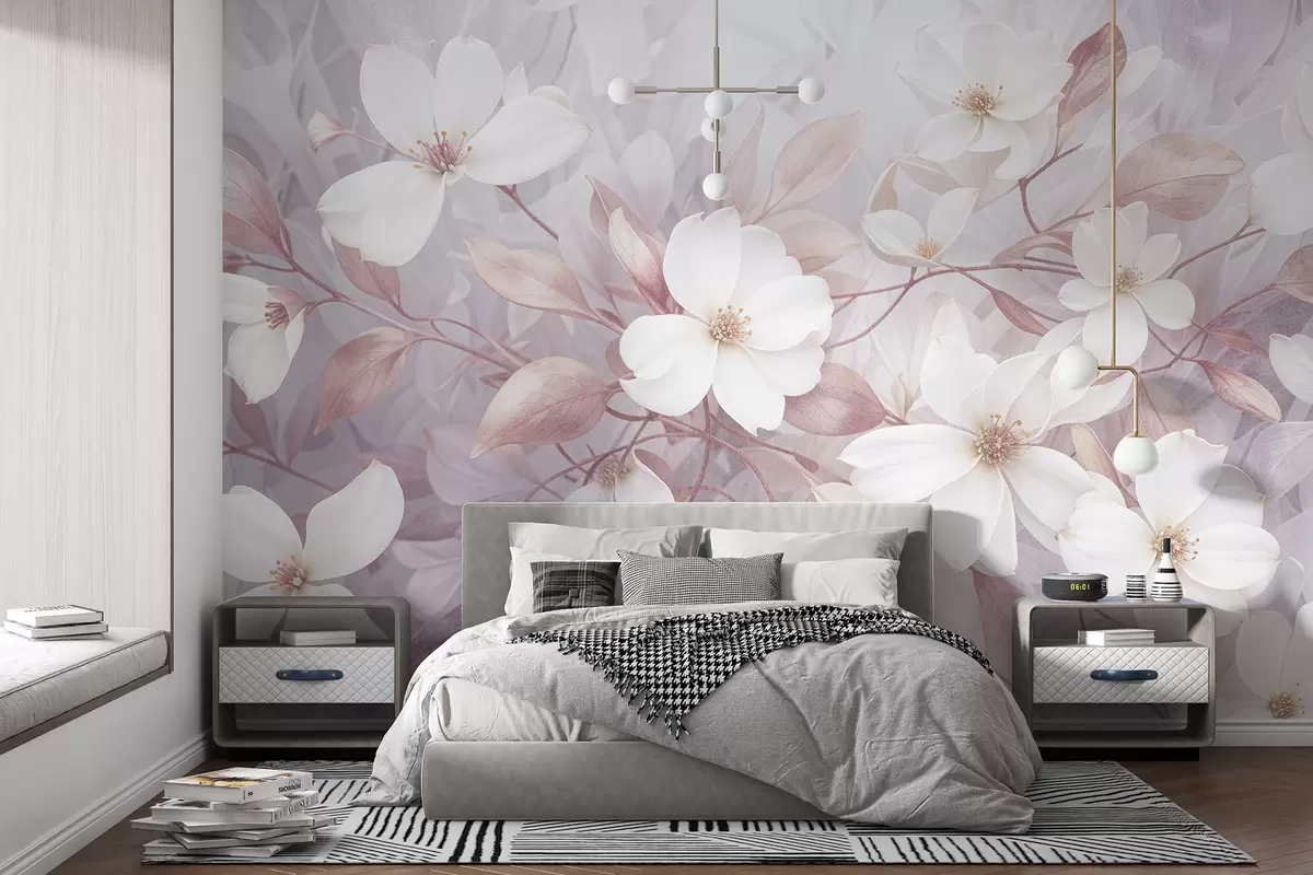 Fototapety Jemné růžové a bílé květy magnólie kvetoucí na měkkých, rozmazaných větvích na světlém pozadí Č. w08196