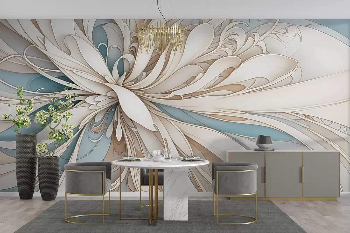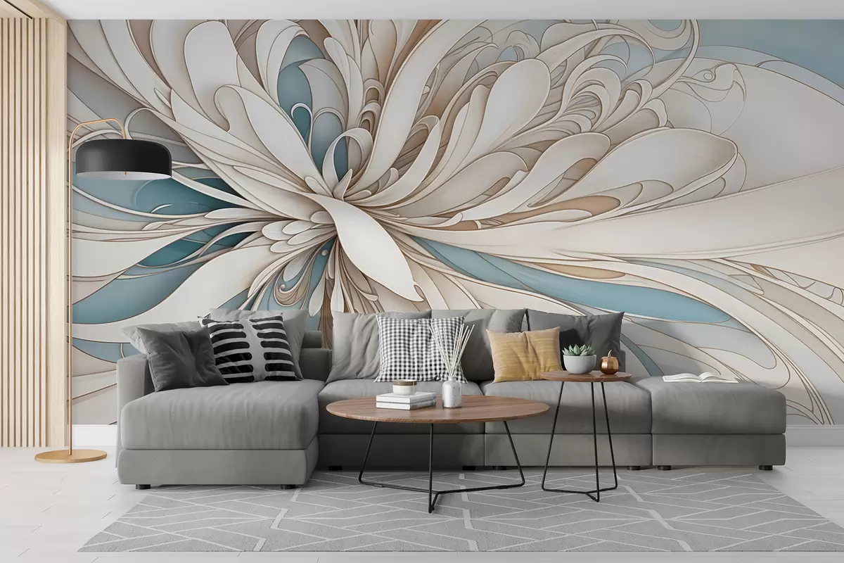 Fototapety Abstraktní květinový vzor s vířícími organickými tvary v odstínech béžové, hnědé a modré barvy na světlém pozadí Č. w08311