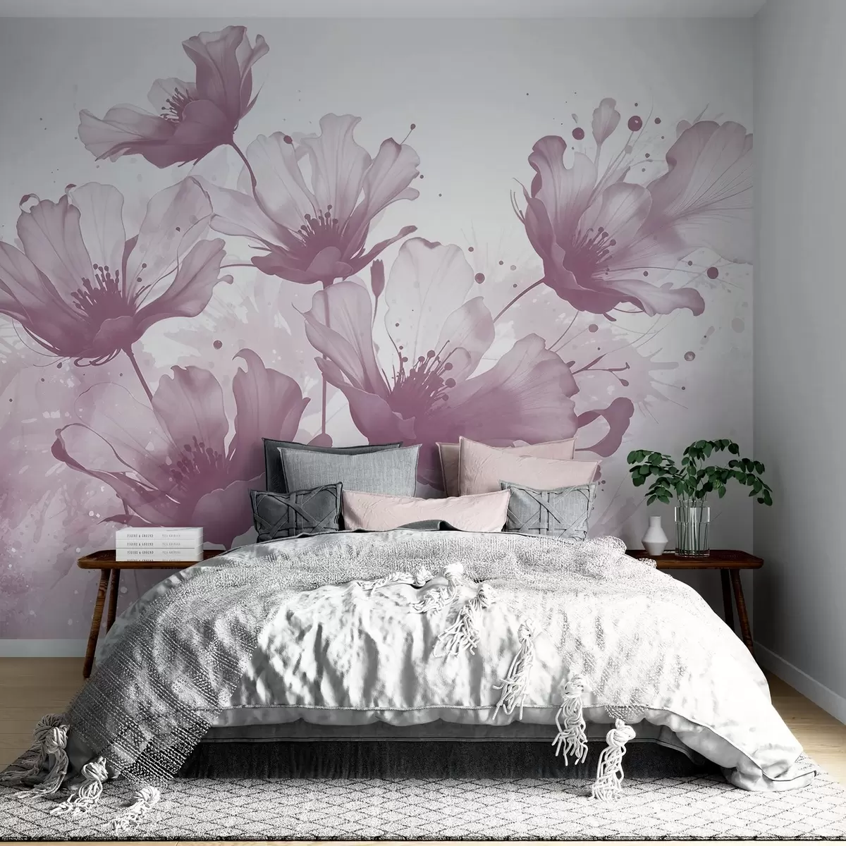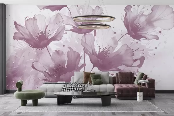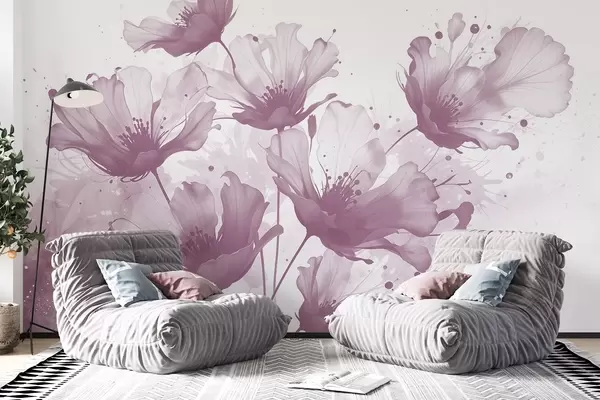 Fototapety Jemné růžové květy s jemnými, rozmazanými okvětními lístky a akvarelovými skvrnami na světlém pozadí Č. w08376v2