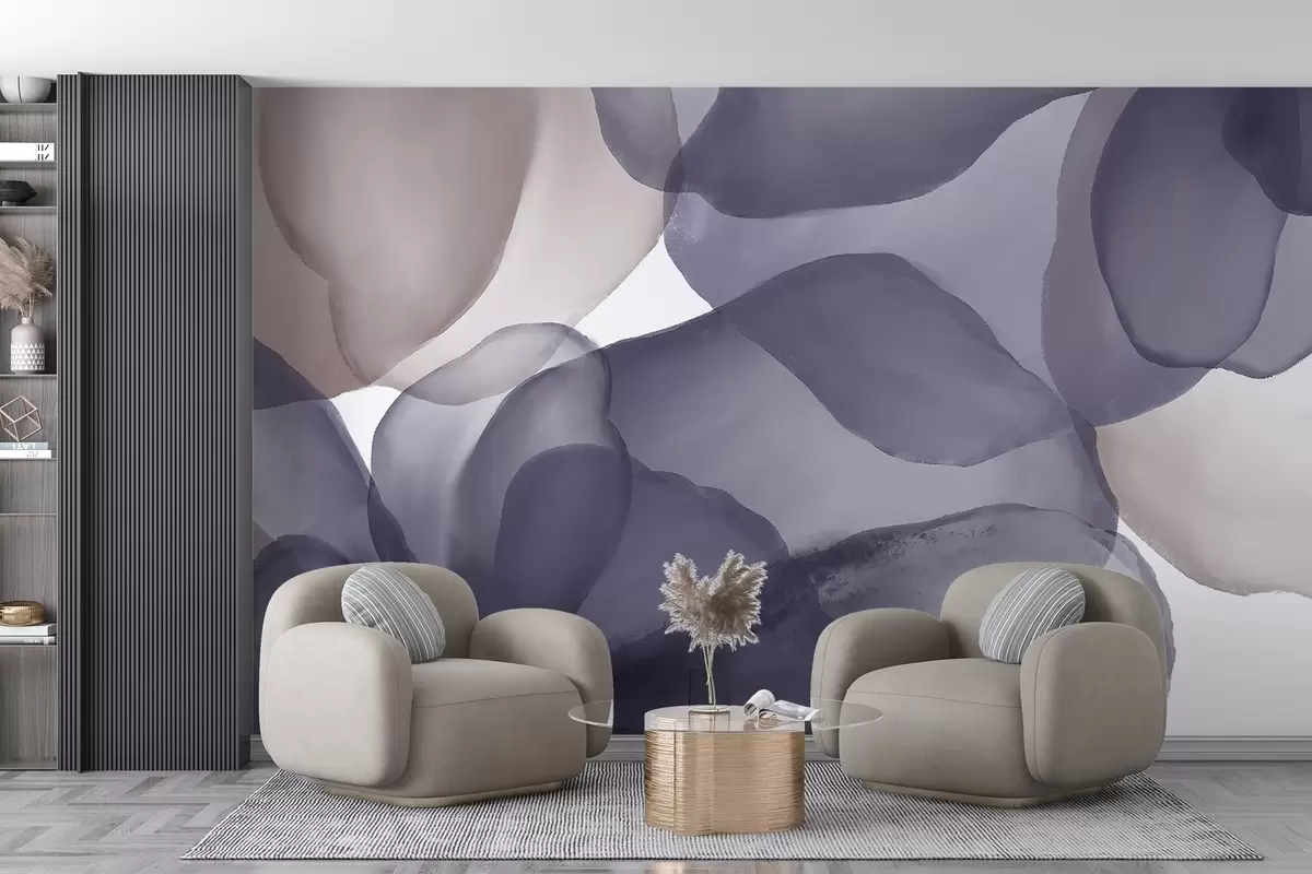 Fototapet Abstraktní tmavě fialové a béžové květinové tvary, měkké a organické formy s pocitem pohybu a plynulosti w08381