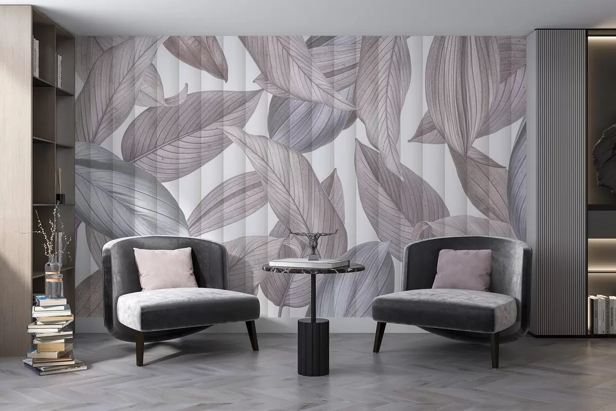 Fototapety Abstraktní detailní listy v odstínech modré, šedé a pastelově růžové na světlém pozadí Č. w08388v1