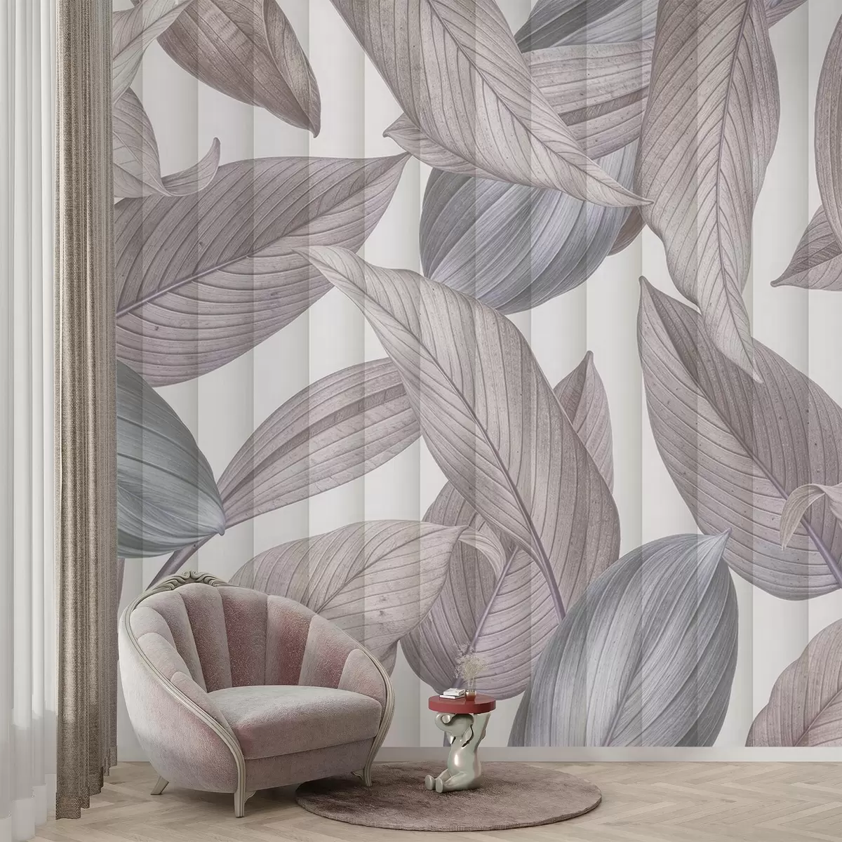 Fototapety Abstraktní detailní listy v odstínech modré, šedé a pastelově růžové na světlém pozadí Č. w08388v1