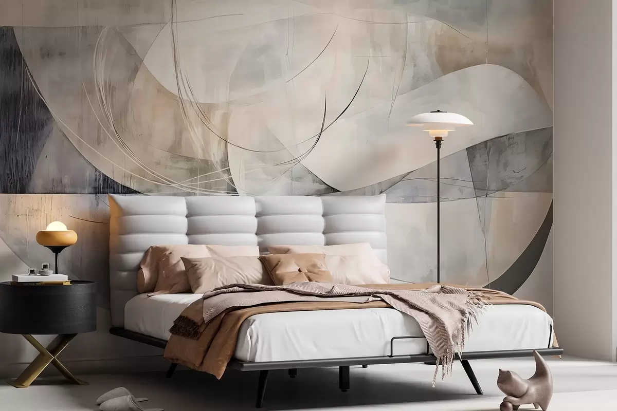 Fototapety Abstraktní tvary a formy v odstínech bílé, šedé, béžové a modré na rozmazaném texturovaném pozadí Č. w08461