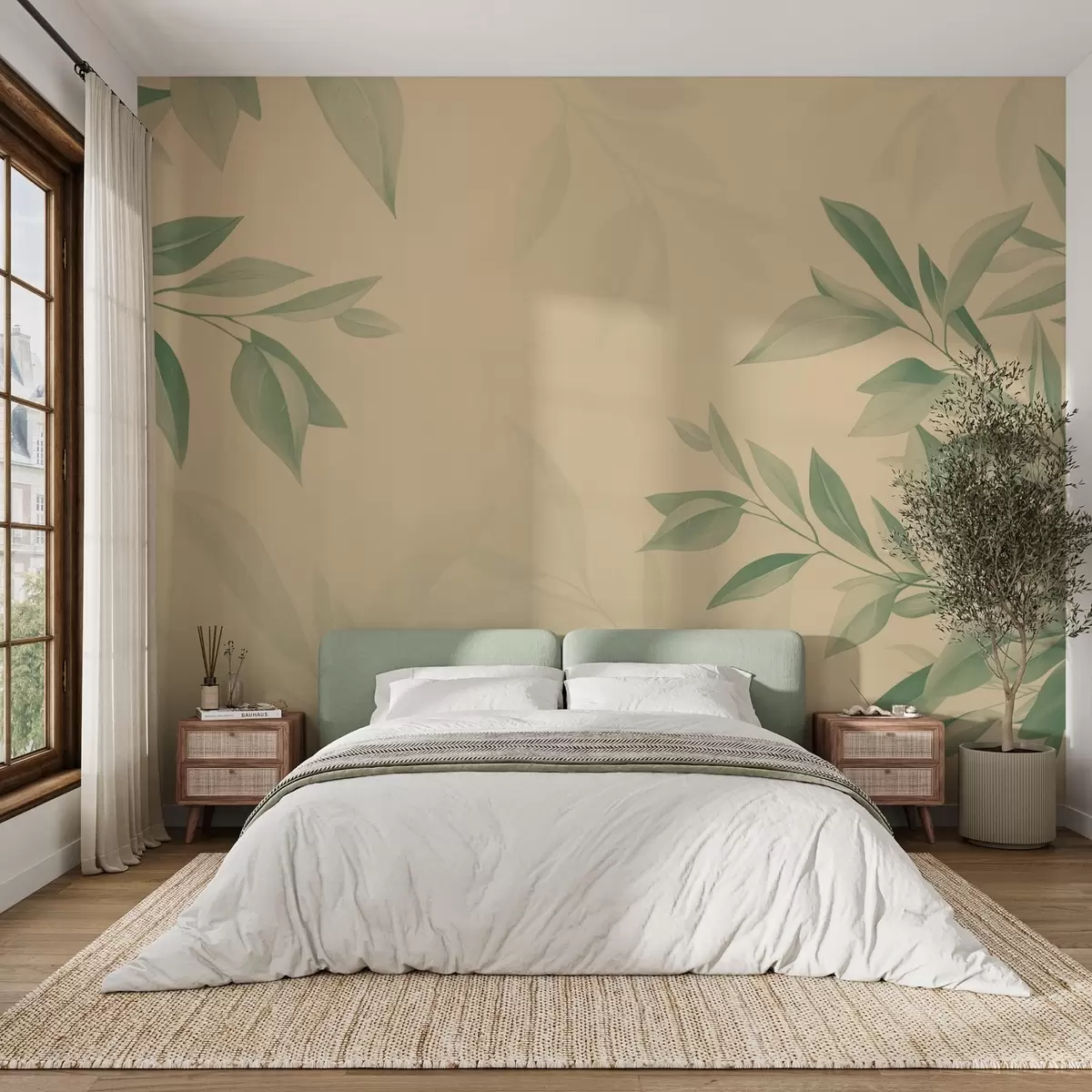 Fototapety Zelené listy s jemným teplým béžovým pozadím Č. w08499v2