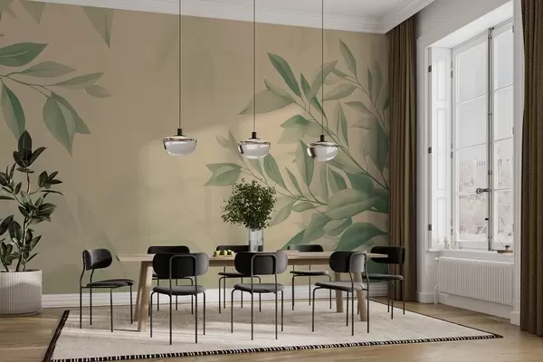 Fototapety Zelené listy s jemným teplým béžovým pozadím Č. w08499v2