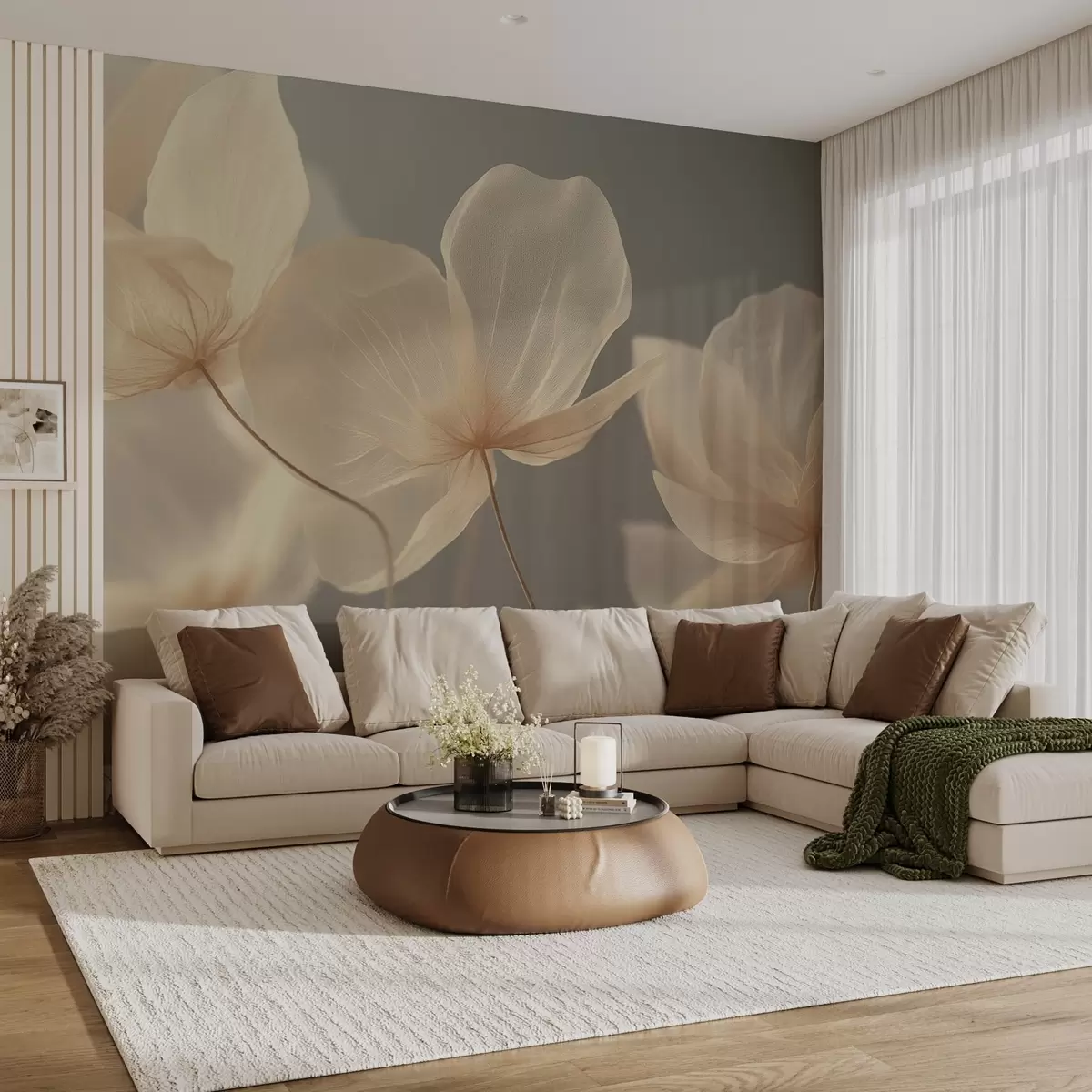Fototapety Lotosové okvětní lístky, jemná kompozice s šedým pozadím Č. w08500v2