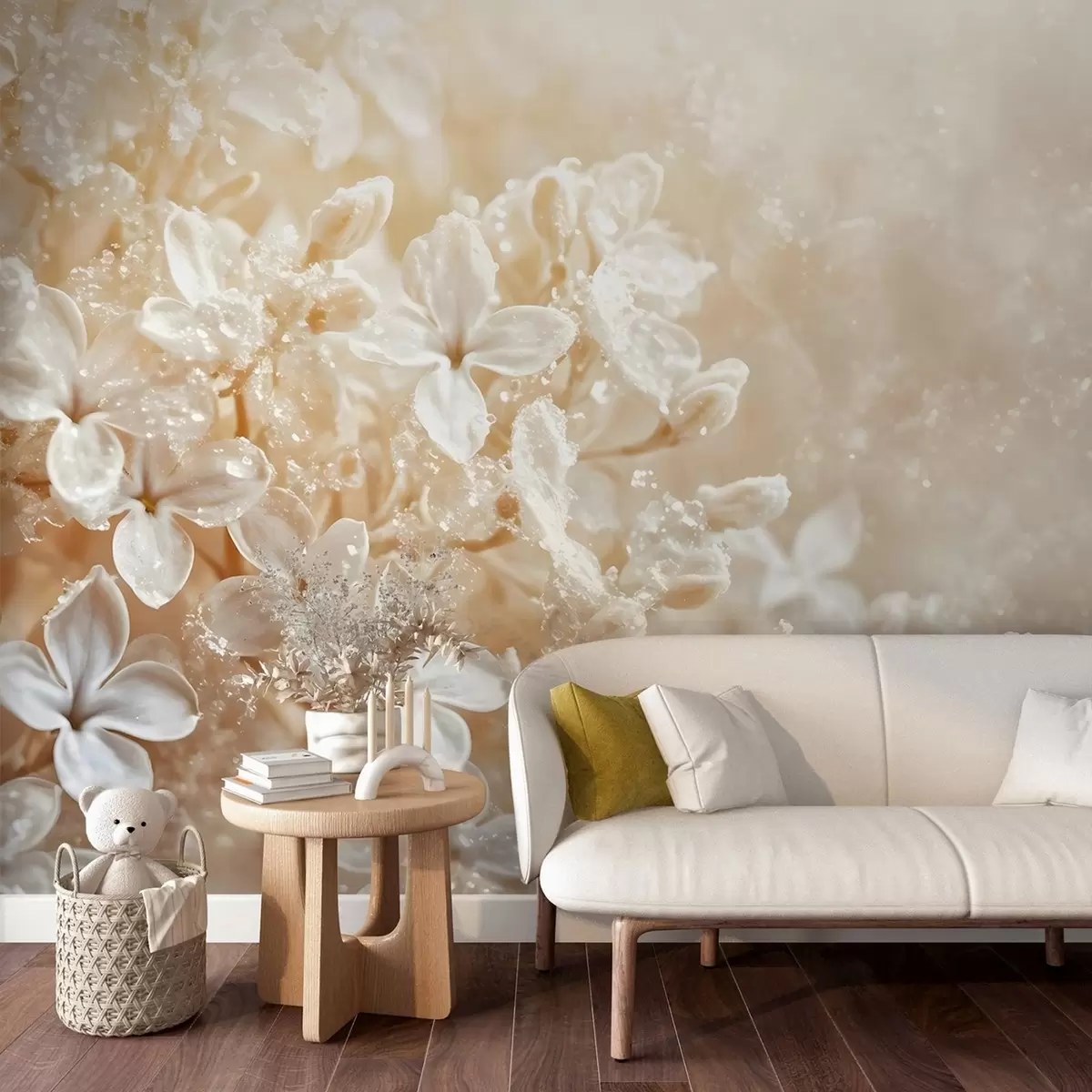 Fototapet Jemné bílé lila květy s jemným, žlutým rozmazaným pozadím w08533