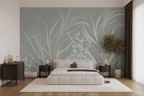 Fototapety Jemný moderní minimalistický bílý květinový potisk na světle pastelově zeleném pozadí Č. w08583v1