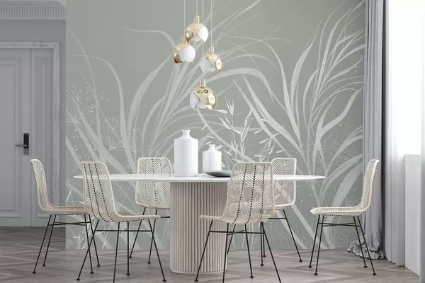 Fototapety Jemný moderní minimalistický bílý květinový potisk na světle pastelově zeleném pozadí Č. w08583v1