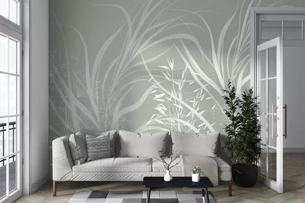 Fototapety Jemný moderní minimalistický bílý květinový potisk na světle pastelově zeleném pozadí Č. w08583v1