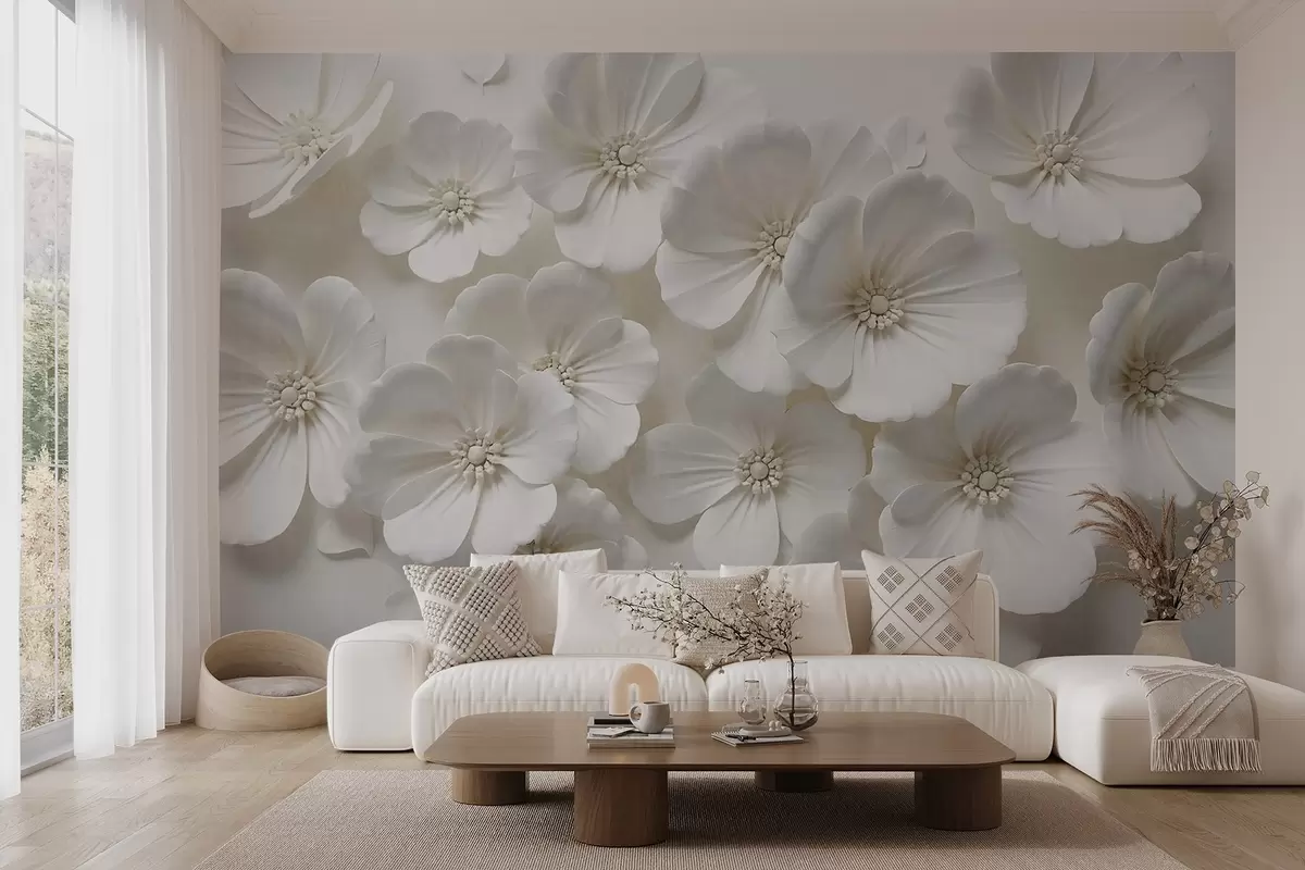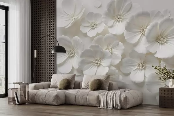Fototapety Bílé květy s jemnými okvětními lístky a středy na světlém pozadí Č. w08587