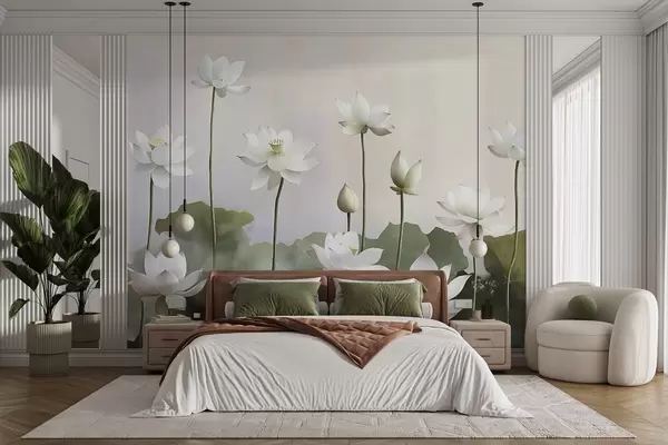 Fototapety Bílé něžné květy lotosu Č. w08596