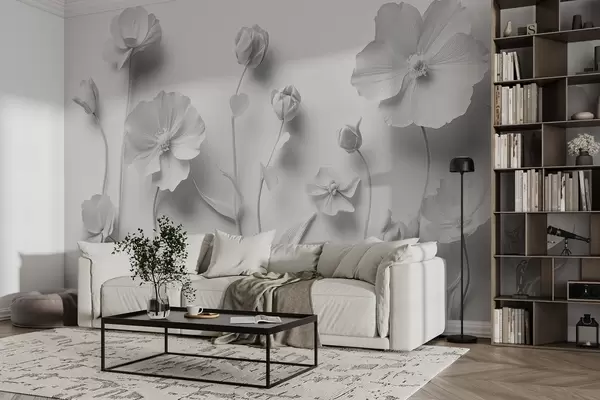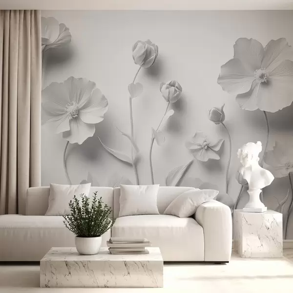 Fototapety Šedé divoké květiny a máky ve štukovém stylu Č. w08630