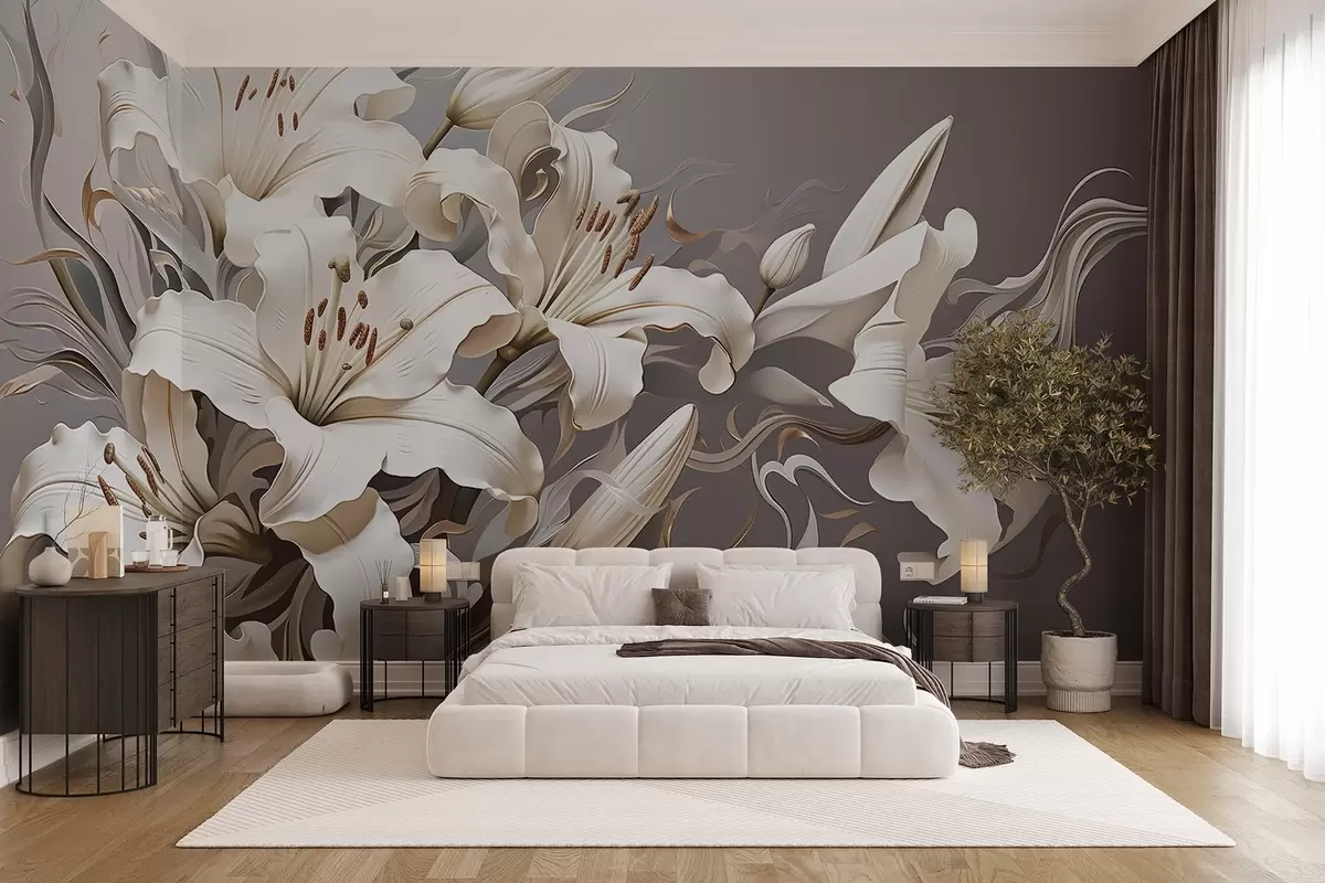 Fototapety Sofistikované bílé lilie v pastelových tónech Č. w08633v1