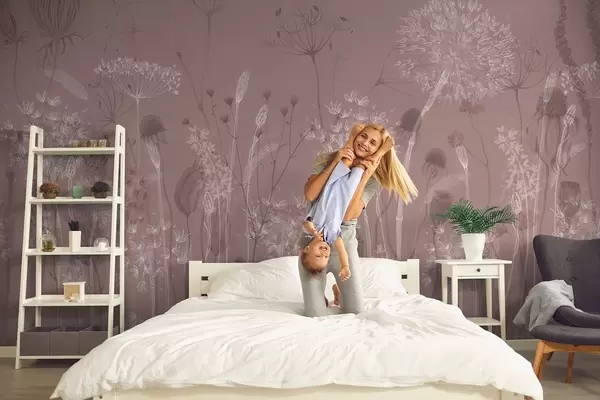 Fototapety Vzdušné pampelišky a polní květiny v akvarelovém stylu v růžových tónech Č. w08637v1