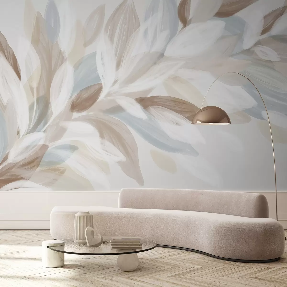 Fototapety Jemné pastelové listy v odstínech bílé, béžové a světle modré vytvářejí jemnou a éterickou kompozici Č. w08649