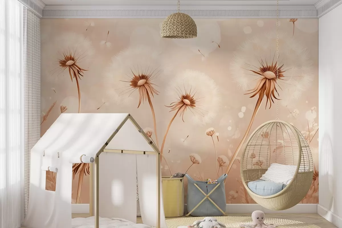 Fototapety Elegantní pampelišky a divoké květiny ve stylu malby v teplých tónech Č. w08657