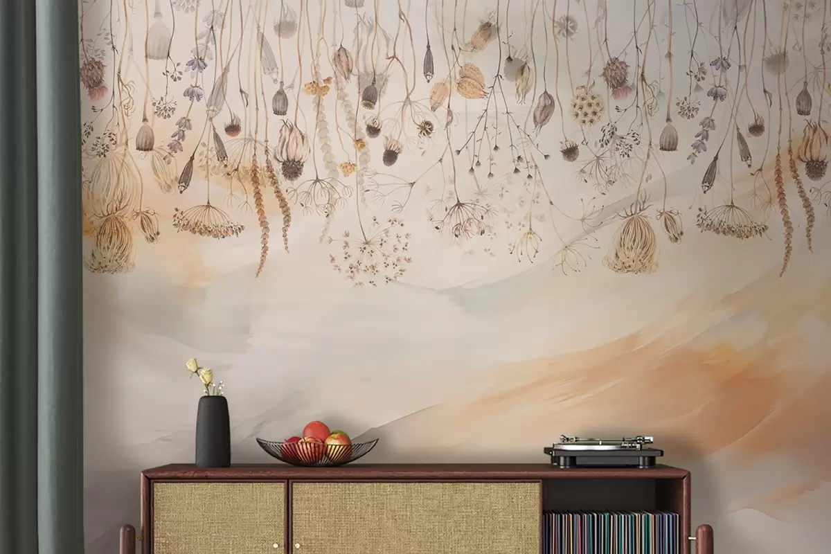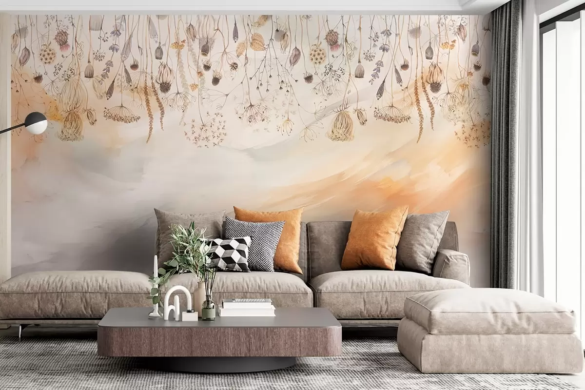 Fototapety Divoké květiny v akvarelovém stylu v pastelových tónech na pozadí tahů štětcem Č. w08681