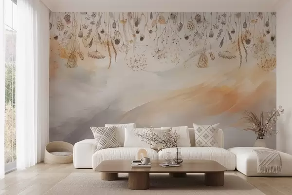 Fototapety Divoké květiny v akvarelovém stylu v pastelových tónech na pozadí tahů štětcem Č. w08681