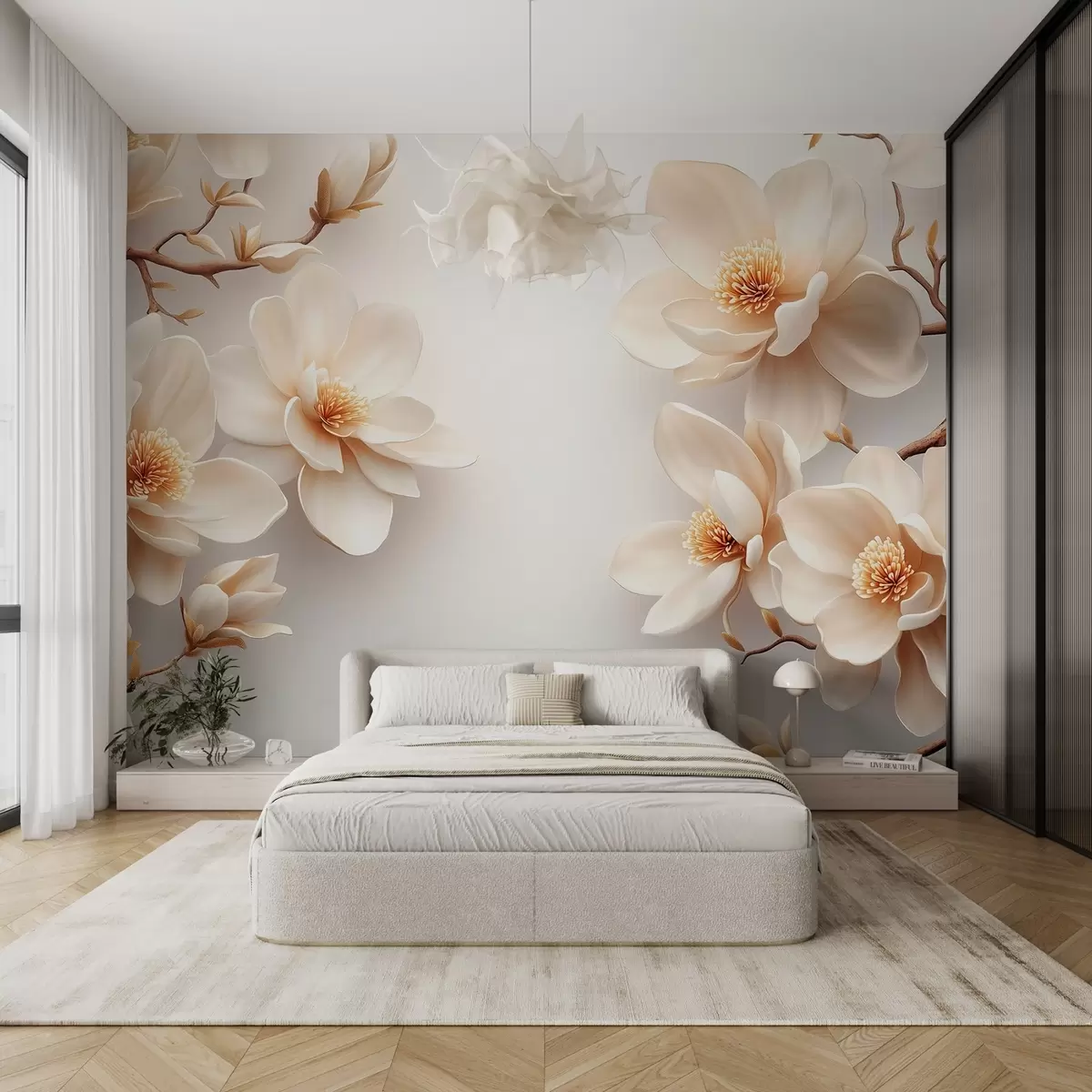 Fototapety Krásné kvetoucí krémové květy magnólie na bílém pozadí Č. w08704