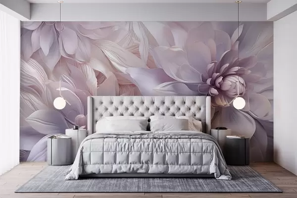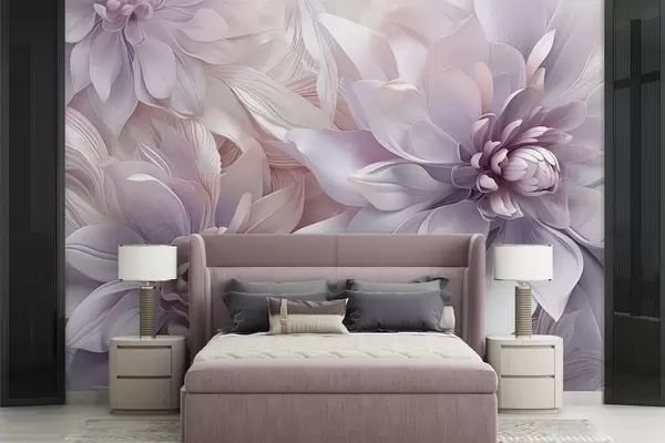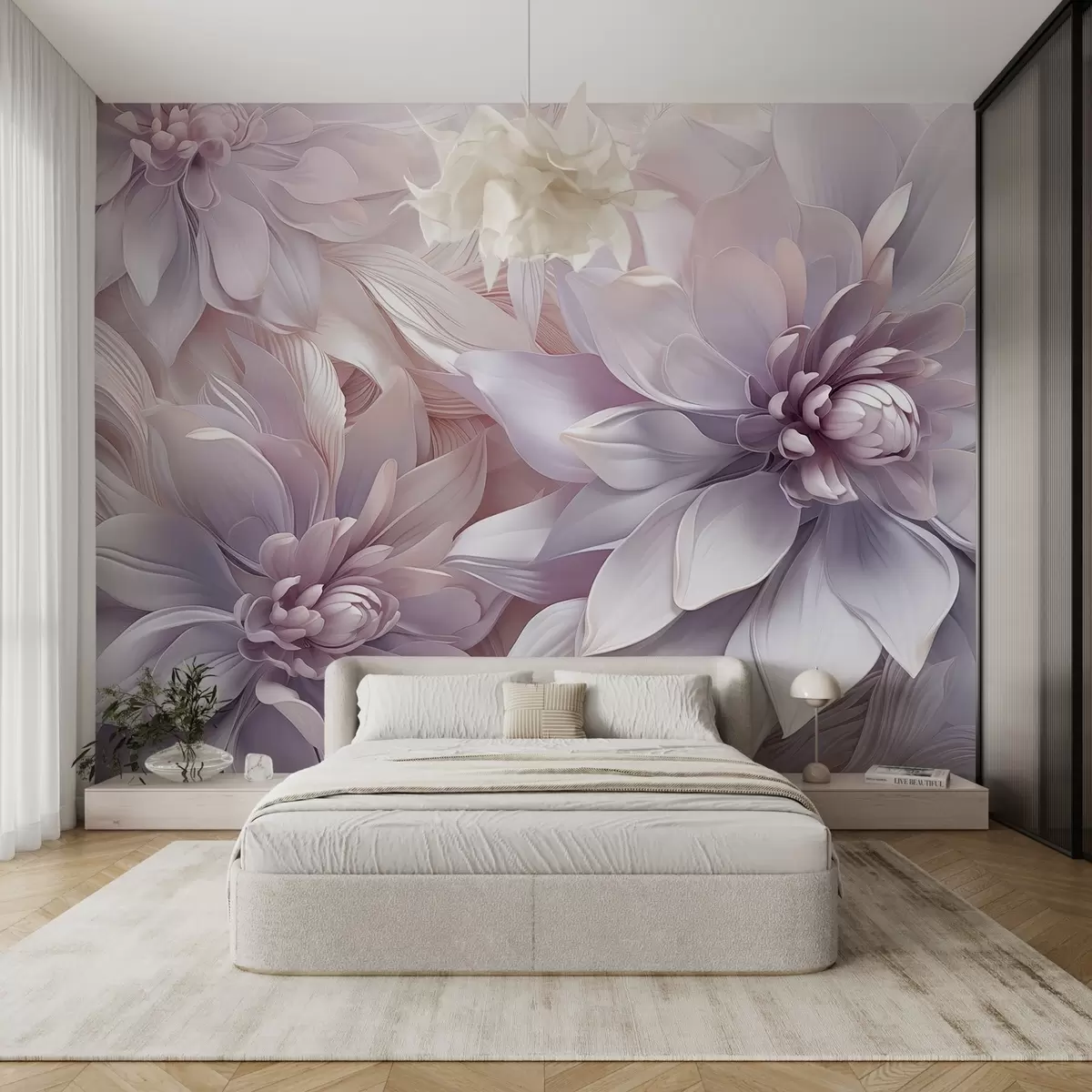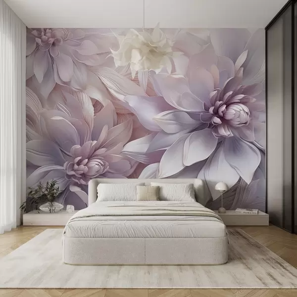 Fototapety Jemné, vrstvené květy v odstínech světle růžové, levandulové a bílé s jemnými okvětními lístky a složitými detaily Č. w08783