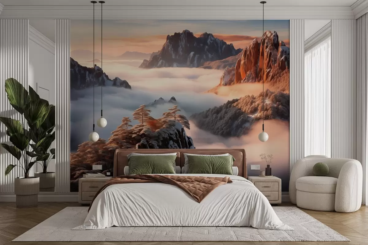 Fototapety Okouzlující horská krajina s mlhou a stromy Č. w08807