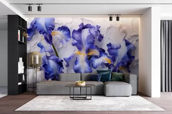 Fototapety Bílé a modré kosatce ve stylu akvarelu Č. w08816