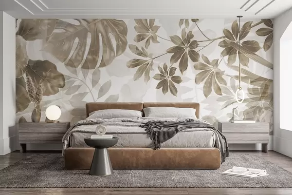 Fototapety Tropické béžové jemné listy na bílém pozadí Č. w08824