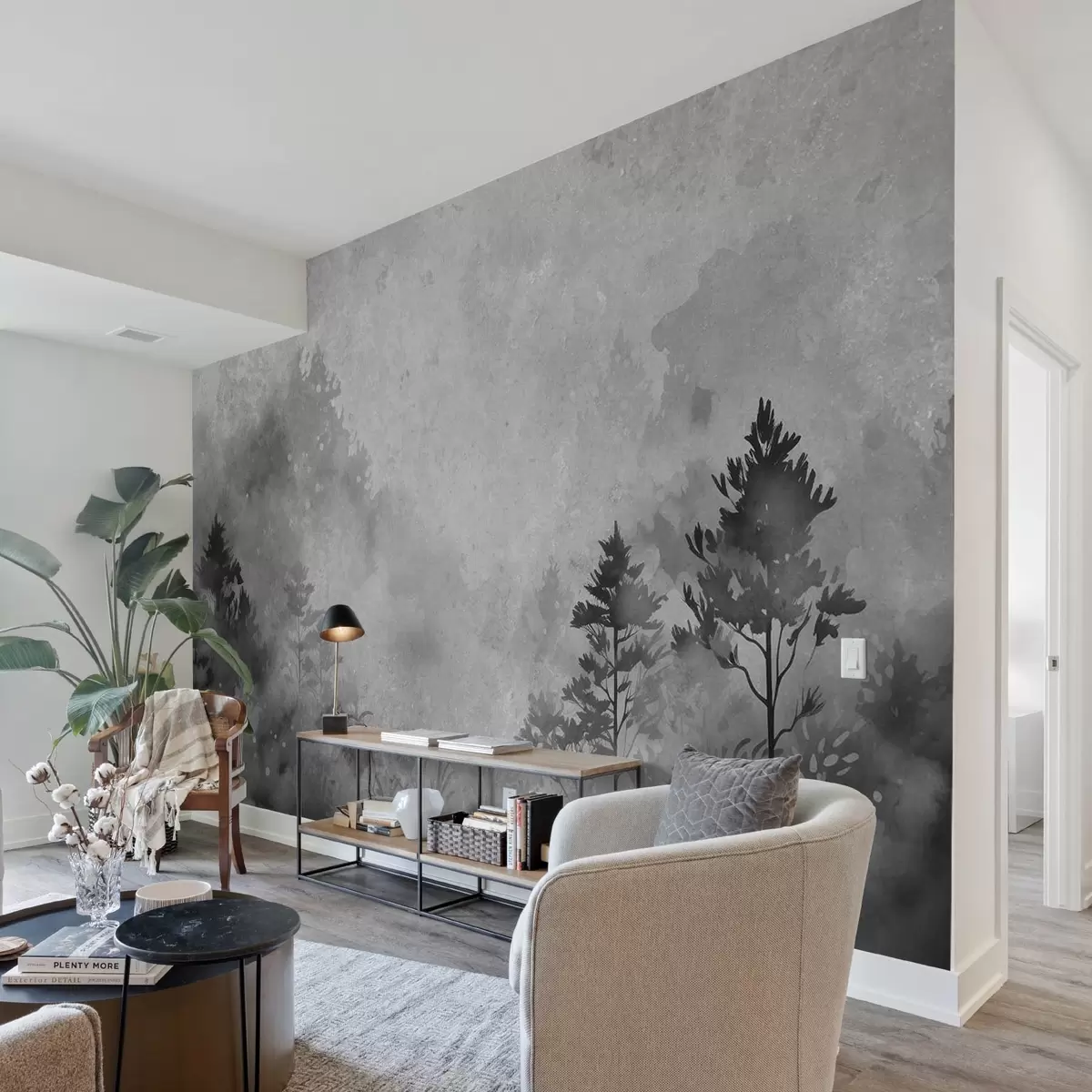 Fototapety Les, imitace akvarelu v černobílém stylu Č. w08862v1