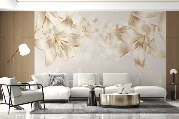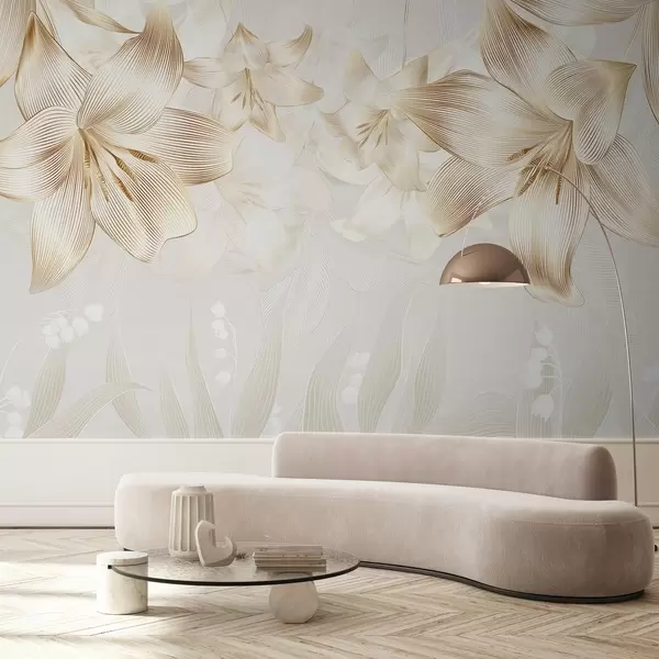 Fototapety Žluté lilie se složitými linkovými detaily, elegantní květinové aranžmá, neutrální barevná paleta Č. w08912