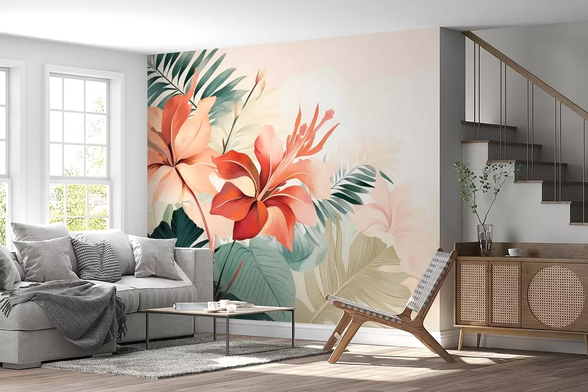 Fototapety Tropické květiny se zelenými listy Č. w08938