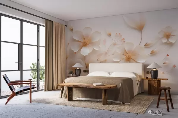 Fototapety Světle béžové jemné divoké květiny Č. w08953