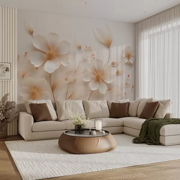 Fototapety Světle béžové jemné divoké květiny Č. w08953
