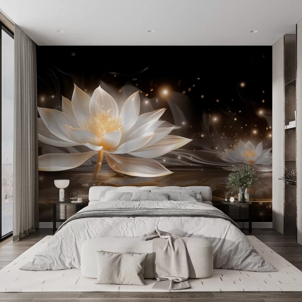 Fototapety Elegantní bílé lekníny na tmavé vodě Č. w09021