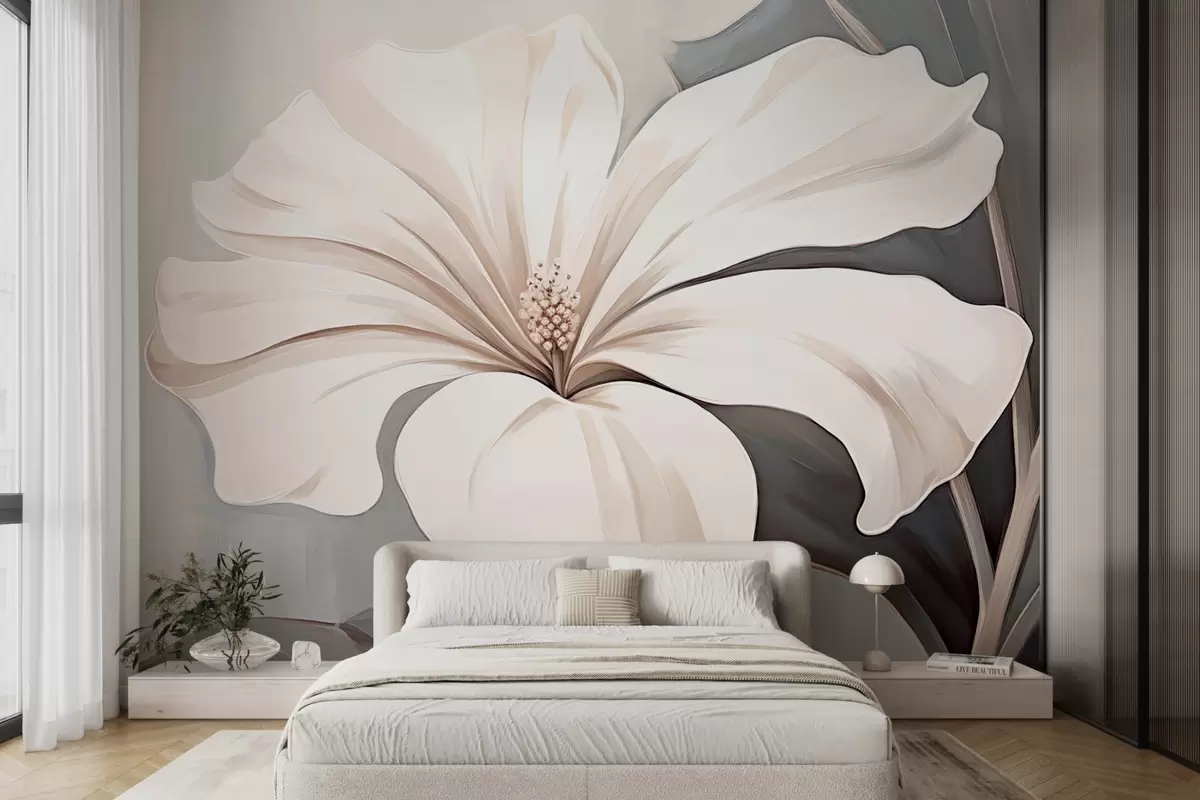 Fototapety Velký bílý květ s okvětními lístky na modrošedém pozadí Č. w09033